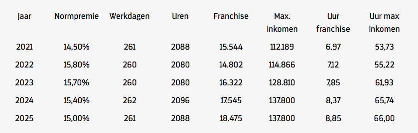 Hieronder vind je een overzicht van de normpremies vanaf 2021 tot en met 2025: